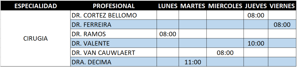 - DR. LOPEZ – LIC. 31/10 AL 27/11.