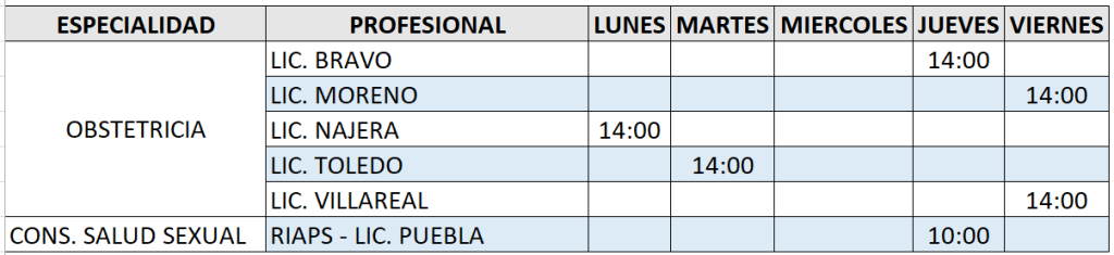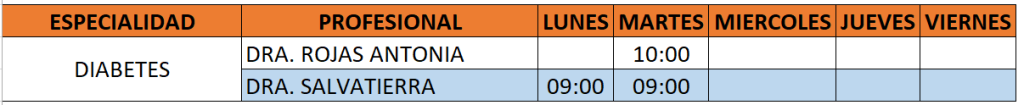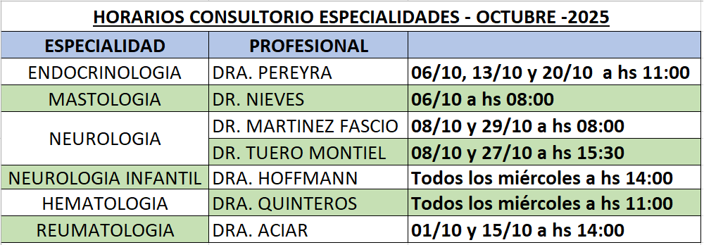 ESPECIALIDADES – OCTUBRE